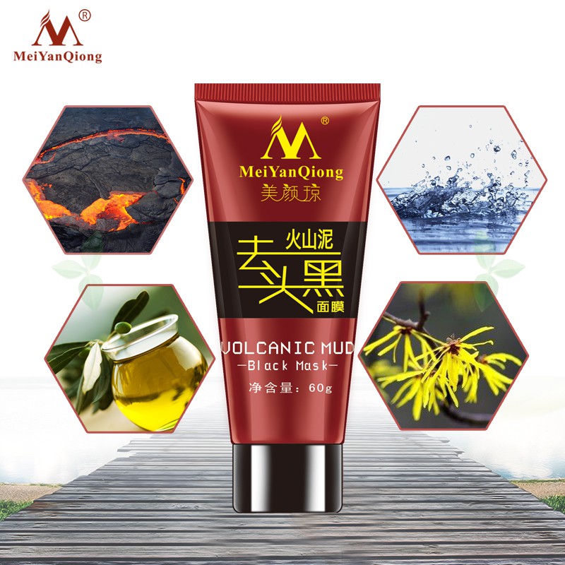 Mặt nạ mụn đầu đen bằng bùn núi lửa MeiYanQiong Sâu làm sạch lỗ chân lông co lại Loại bỏ mụn đầu đen mặt nạ 60g