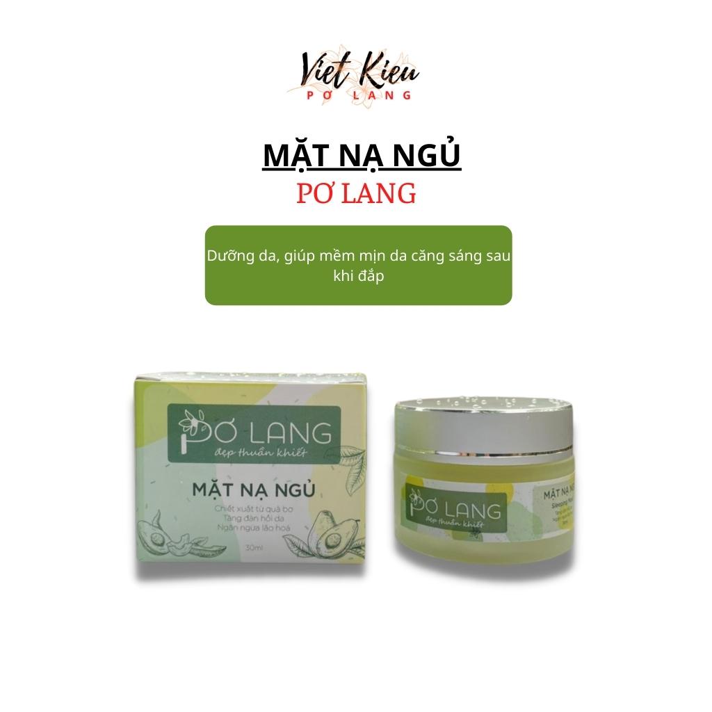 Mặt nạ ngủ Pơ Lang giúp tăng đàn hồi cho da, giảm lão hóa da. Thương hiệu: Pơ Lang. Xuất xứ: Việt Nam. Hạn sử dụng: 12 tháng. Thành Phần: - Dầu quả bơ, Vitamin B3, Vitamin E, vitamin B5. - Chiết xuất giữ ẩm hyaluronic acid. - Glycerin thực vật Công dụng: