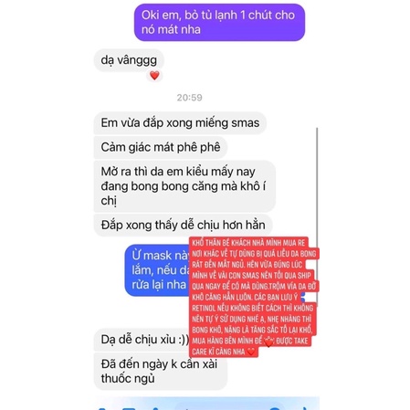 MASK SMAS - cấp ẩm, làm dịu, phục hồi 🍃 Dòng chất lượng cao cấp, với hiệu quả vượt trội nhưng giá lại rất dễ chịu. 🍃 Đắp vào da dịu, mát, căng ẩm ngay lập tức thấy bằng mắt thường và hiệu quả còn kéo dài. 🍃 Nhất là với các bạn da vừa đi nặn mụn, lazer, vi tảo, phi kim, hay có tổn thương về da, da quá khô, quá thiếu ẩm, đắp xong sẽ dịu ngay căng mướt và hết đỏ da luôn. Các bạn có làn da nhạy cảm, thường xuyên bị mẩn đỏ, ngứa rát có thể dùng 2 tới 3 lần/tuần. ✅Công dụng chính: Thành phần chính của mặt nạ là peptide giúp bảo vệ da hiệu quả từ các yếu tố bên ngoài, giúp làm dịu da, tái tạo và phục hồi da tổn thương nhanh. ✅Giảm đỏ ngay lập tức chỉ sau 20’ ( với các trg hợp lăn kim, vi tảo, lazer, xâm lấn....) ✅Thúc đẩy hiệu quả chống nhăn, chống lão hoá, cho da sức đề kháng mạnh mẽ. ✅Giúp da khoẻ sáng mịn, căng ẩm. ✅Đặc biệt là thích hợp với mọi loại da Cam kết hàng chính hãng, nhập trực tiếp từ nhà phân phối độc quyền tại Việt Nam. 100% Ảnh thật do shop chụp sản phẩm. #smas;#matnasmas;#peptidemask;#matnaphuchoi;#peptidesilkmask