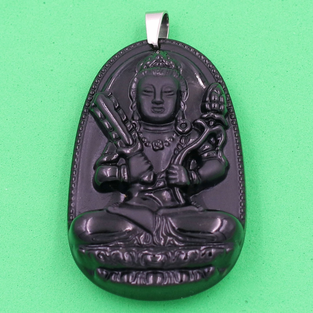 Mặt Phật Hư không tạng thạch anh đen 5 cm kèm vòng cổ dây cao su đen - mặt dây chuyền size lớn - size L, Mặt Phật bản mệnh