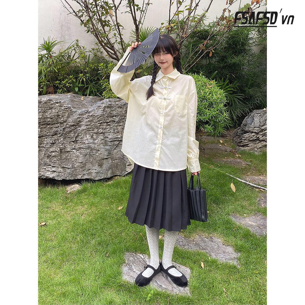 Mới Áo Sơ Mi Tay Dài Dáng Rộng Phong Cách Trung Hoa Cổ Điển Dành Cho Bạn Nữ