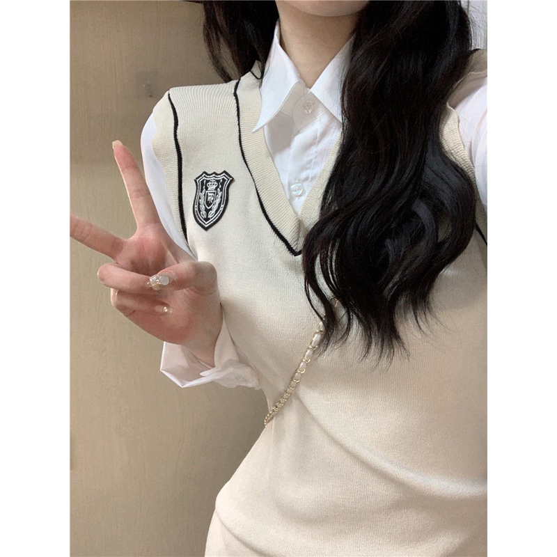 Zimaho Set Váy Đầm Hai Dây Họa + Áo Khoác cardigan Dệt Kim Tay Dài Thời Trang Mới