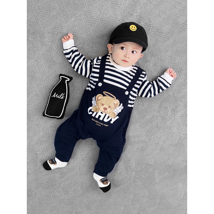 Mới Bộ Áo Liền Quần Tay Dài Bằng Vải cotton In Họa Tiết Gấu Hoạt Hình Dành Cho Bé Trai Gái 0-2 Tuổi