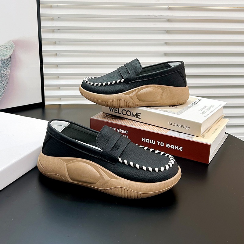 Giày Thể Thao Nữ Đế Cao Màu Đen Da Mềm Êm Nhẹ Mới Nhất 2023 giayBOM GB Classics B1975
