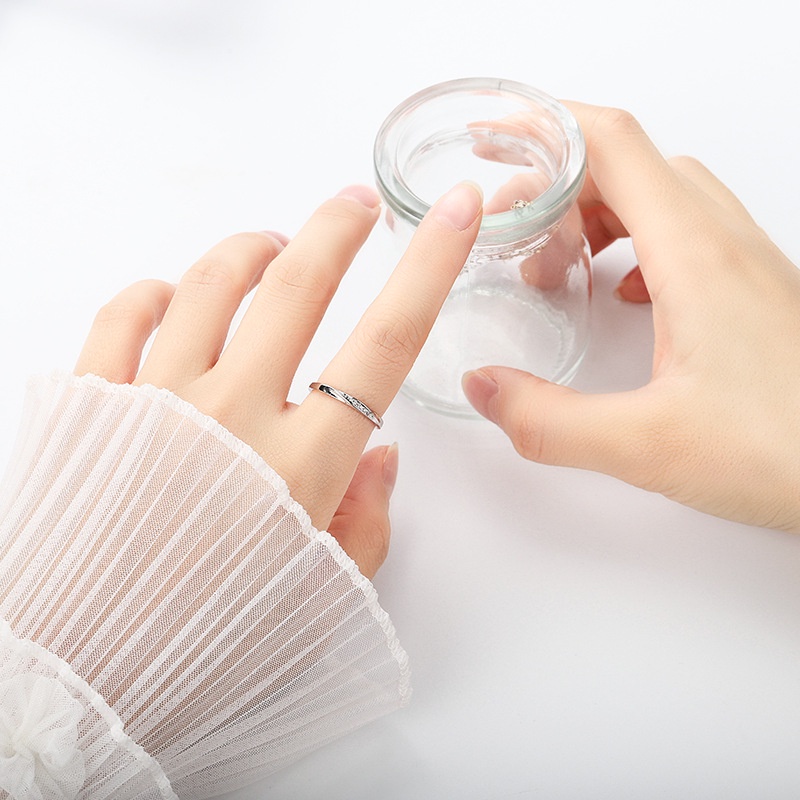 Mới Nhẫn cặp đôi Lozenge đính đá quý nhỏ điều chỉnh được màu bạc làm quà tặng sinh nhật/sinh nhật cho cặp đôi