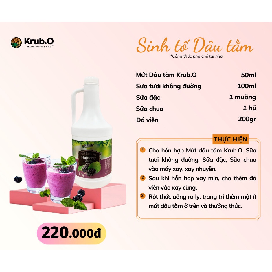 Mứt Dâu Tằm Krub.O Chai 2.1kg - Sốt dâu tằm đặc & có thịt quả - Pha trà trái cây, sữa chua, trà sữa