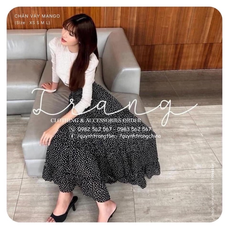 Mango Đức - Chân váy kiểu chính hãng auth new tag cao cấp có sẵn sale xòe chấm bi dài midi xếp ly 77069208