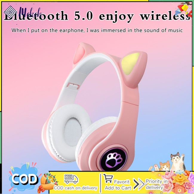 Mekek Tai Nghe Chụp Tai b39 bluetooth 5.0 Chống Ồn Thiết Kế Tai Mèo Dạ Quang Thời Trang