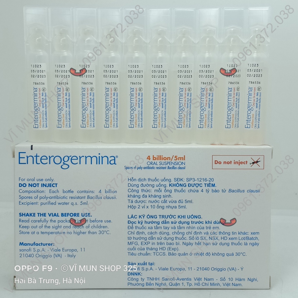 THÀNH PHẦN VÀ DẠNG BÀO CHẾ THÀNH PHẦN: Thành phần chính: Mỗi ống nhựa 5ml chứa 2 tỉ hoặc 4 tỷ bào tử Bacillus clausii kháng đa kháng sinh. Tá dược: Nước cất tinh khiết. DẠNG BÀO CHẾ: Dạng hỗn dịch uống. Hộp 20 ống nhựa chứa 5ml CHỈ ĐỊNH Phòng ngừa rối loạn hệ vi khuẩn đường ruột và bệnh lý kém hấp thu vitamin nội sinh. Hỗ trợ để phục hồi hệ vi khuẩn đường ruột Rối loạn tiêu hóa cấp và mãn tính ở trẻ em hoặc rối loạn vi khuẩn đường ruột và kém hấp thu vitamin. LIỀU LƯỢNG VÀ CÁCH DÙNG Trẻ nhỏ có thể dùng từ 1-2 ống men vi sinh Enterogermina mỗi ngày Trẻ nhỏ (sơ sinh) 1-2 ống/ ngày Men vi sinh Enterogermina có thể dùng từ 1-2 ống/ngày cho trẻ em Trẻ em 1-2 ống/ ngày Người lớn có thể dùng từ 2-3 ống men vi sinh Enterogermina mỗi ngày Người lớn 2-3 ống/ ngày Đóng gói: Hộp 20 ống x 5ml Sản phẩm này không phải là thuốc và không có tác dụng thay thế thuốc chữa bệnh #enterogermina #men_vi_sinh #enter #menongvisinh #menvisinh #tieuchay