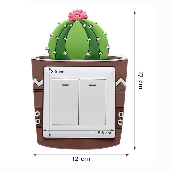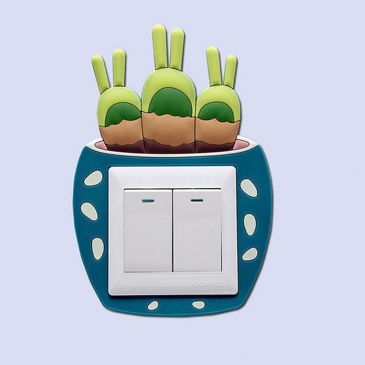 Miếng dán dạ quan trang trí ổ cắm điện trên tường hình chậu xương rồng bằng silicon