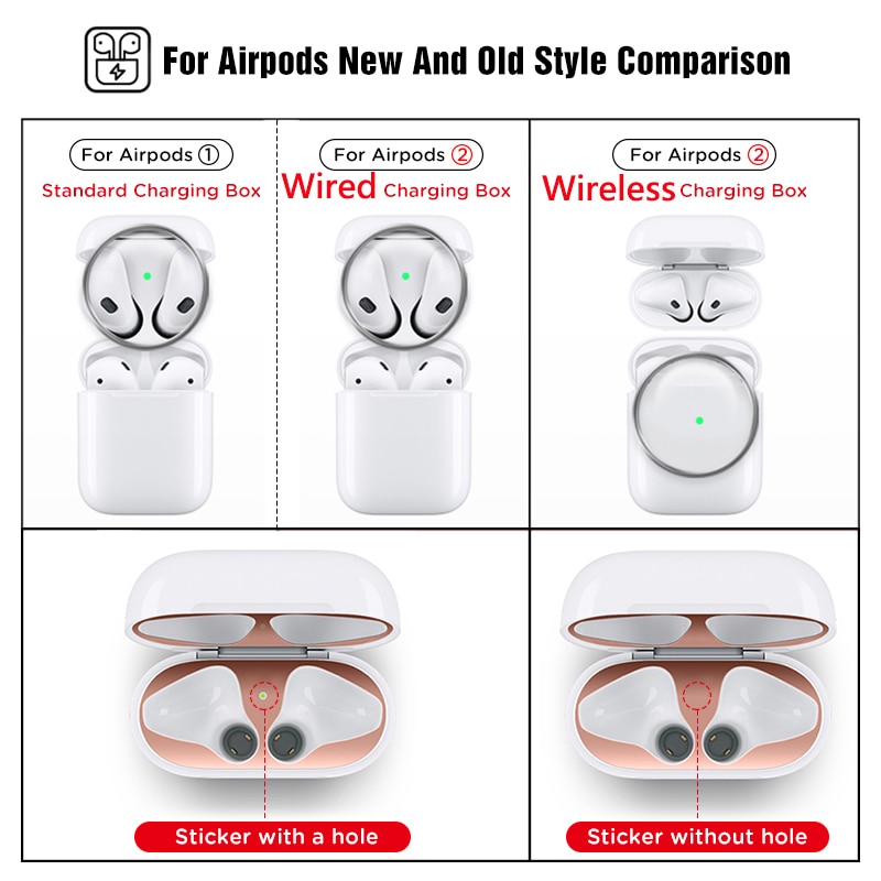 Miếng dán kim loại chống bụi bảo vệ hộp tai nghe thích hợp cho AirPods 1 2 3