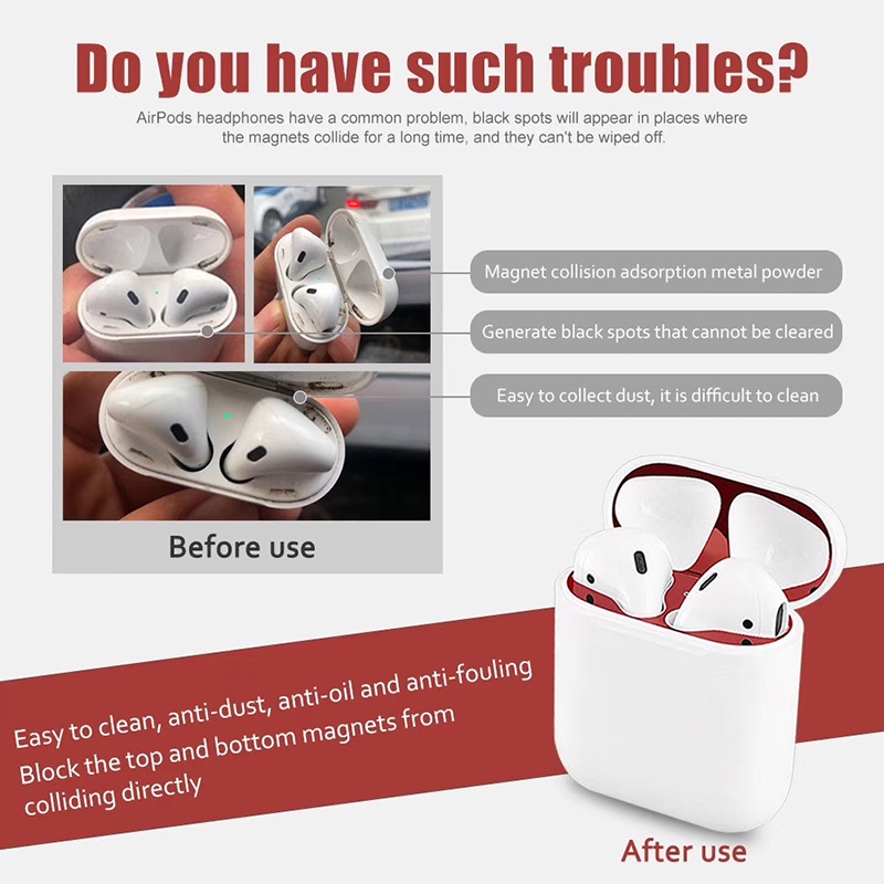 Bảo vệ da siêu mỏng Miếng dán phim kim loại Miếng dán sắt che bụi cho Airpods 2 Airpod pro / Airpods 3 -----🌸Chào mừng đến với cửa hàng đồng hồ của tôi🌸-- 🔔Chúng tôi là một cửa hàng phụ kiện apple thú vị, nếu bạn thích sản phẩm của chúng tôi, Hãy theo dõi chúng tôi,