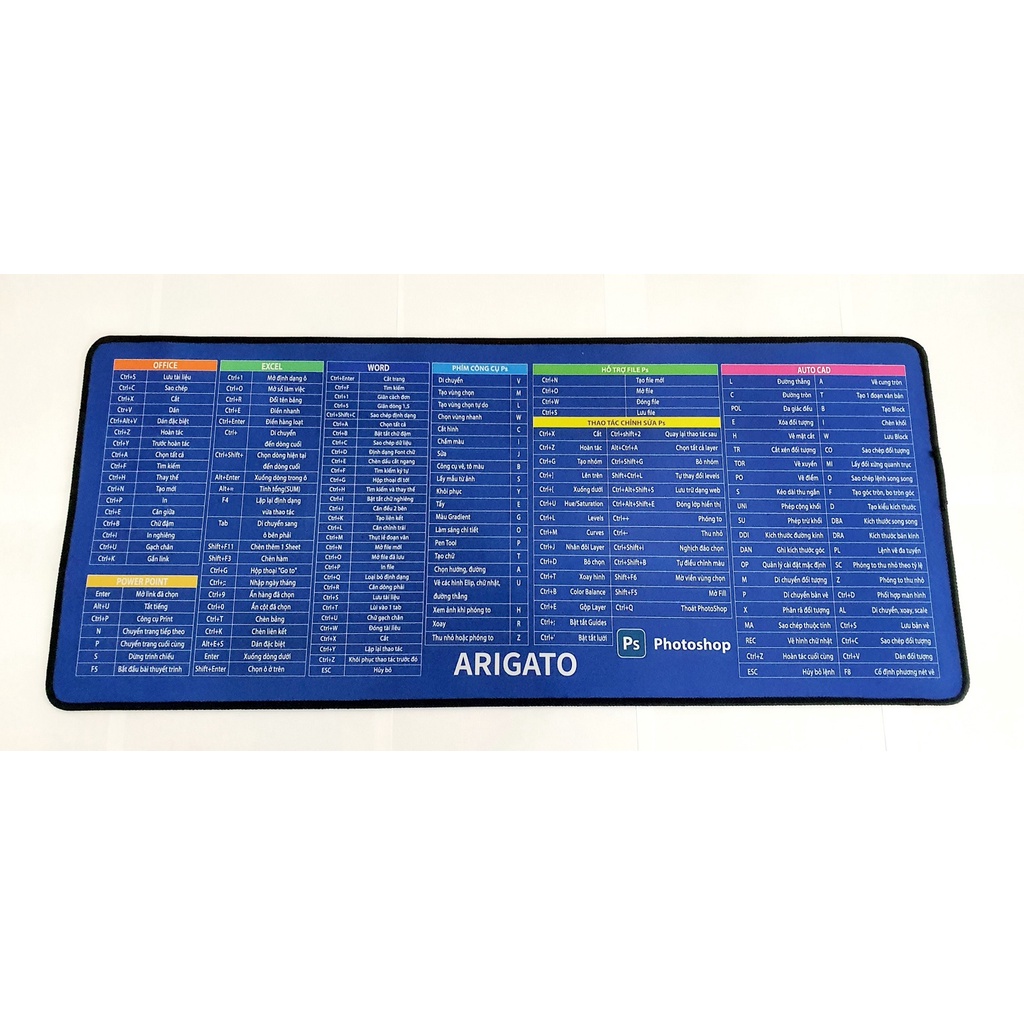 Miếng Lót Chuột Phím Tắt Máy Tính Cỡ Lớn 70x30 May Bo Viền In Sắc Nét Không Bay Màu Chống Trơn Trượt - Arigato THÔNG TIN MIẾNG LÓT CHUỘT: ✅Kiểu dáng hình chữ nhật ✅Size : 700x300x2mm ✅Chất liệu : Cao su ✅Bề mặt : Trơn - Nhẵn 👉MÔ TẢ MIẾNG LÓT CHUỘT: ✅Lót chuột có c