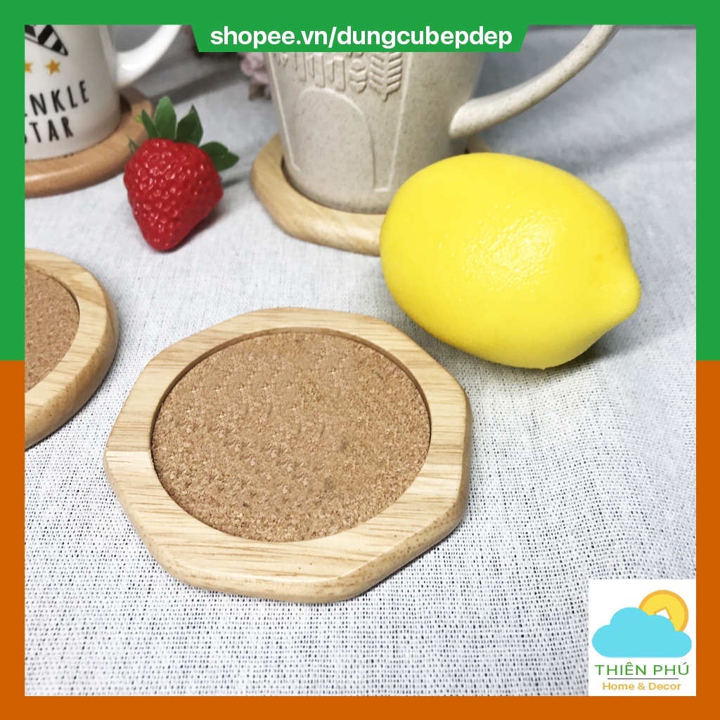 Miếng lót ly gỗ Cao su size 9cm cao cấp, thích hợp để trang trí bàn ăn, lót cốc, tách trà nóng lạnh cho quán cafe