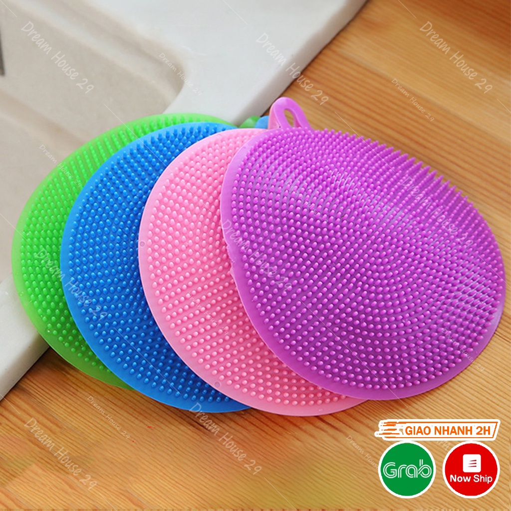 Miếng rửa chén silicon, rửa bát đĩa đa chức năng nhiều màu đường kính 10cm