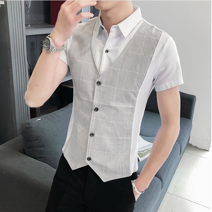 Áo sơ mi ngắn tay giả hai lớp thời trang phong cách hàn quốc thời trang mùa hè cho nam