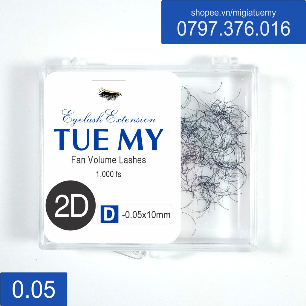 Quy cách sản phẩm: • Số lượng: Đảm bảo đủ 1.000 fans/hộp; • Độ dày: 0.05 • Chiều rộng riêng mỗi fan: 0.2cm • Có đủ các loại kích thước từ 9 – 15mm (tùy chọn); • Có đủ các loại độ cong: A - I - J - E - B - C - CC - D - U - O • Mi Fan Volume 2D TUỆ MỸ là sản phẩm của xư