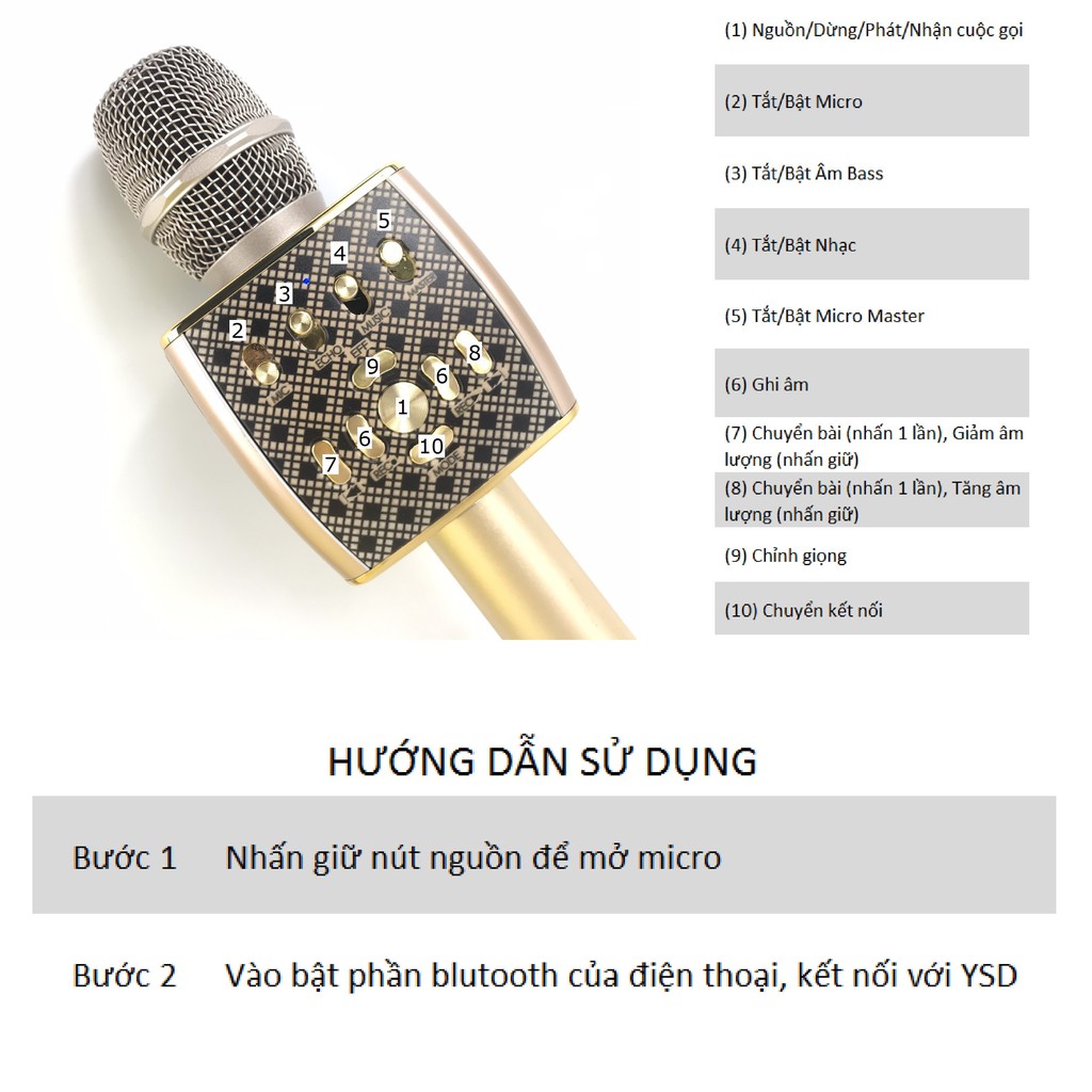 Gíá Rẻ MICRO KARAOKE YS-96 / 97 BLUETOOTH KHÔNG DÂY HỖ TRỢ GHI ÂM ĐỔI GIỌNG - ÂM THANH CỰC CHẤT