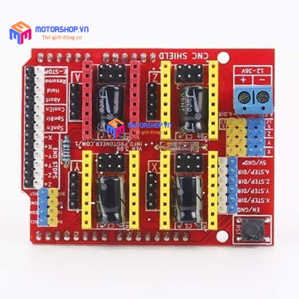 Tính năng sản phẩm: MDL174 Module CNC Shield V3 là board mở rộng của Arduino UNO R3 dùng để điều khiển các máy CNC mini. Board có 4 khay dùng để cắm các mô đun điều khiển động cơ bước A4988, khi đó board có thể điều khiển 3 trục X, Y, Z và thêm một trục thứ 4 t
