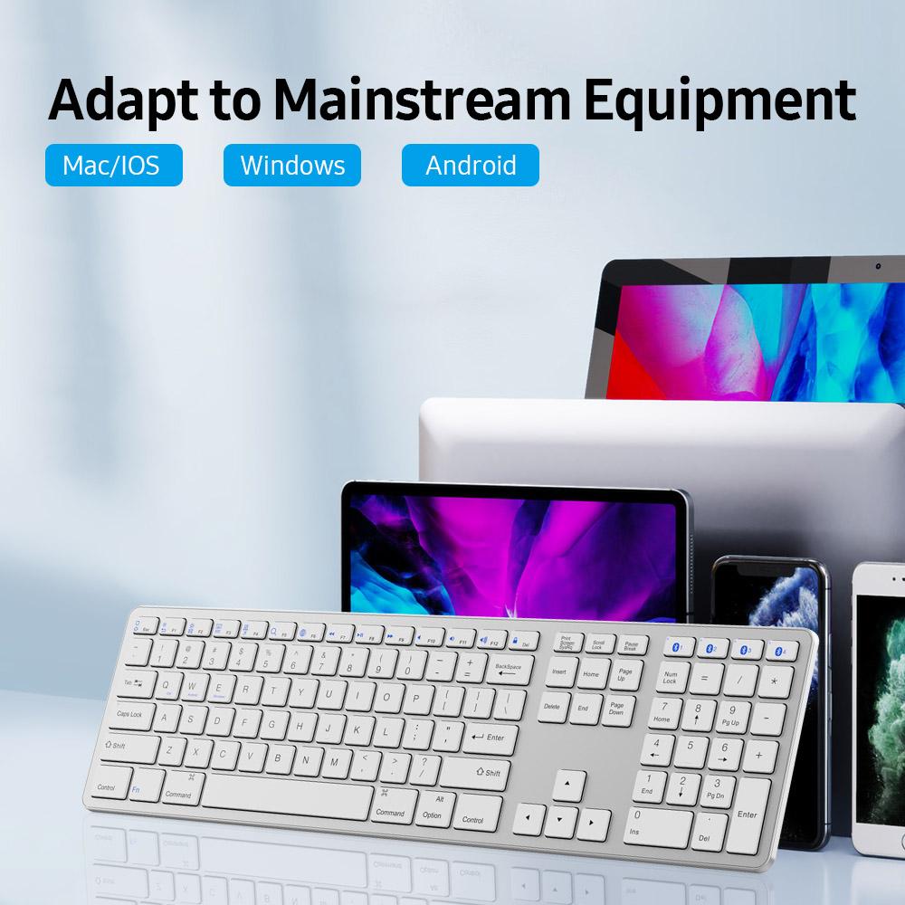 Multi-paired BT Keyboard 109-key Wireless Keyboard Support for IOS/Android/Windows System Silver