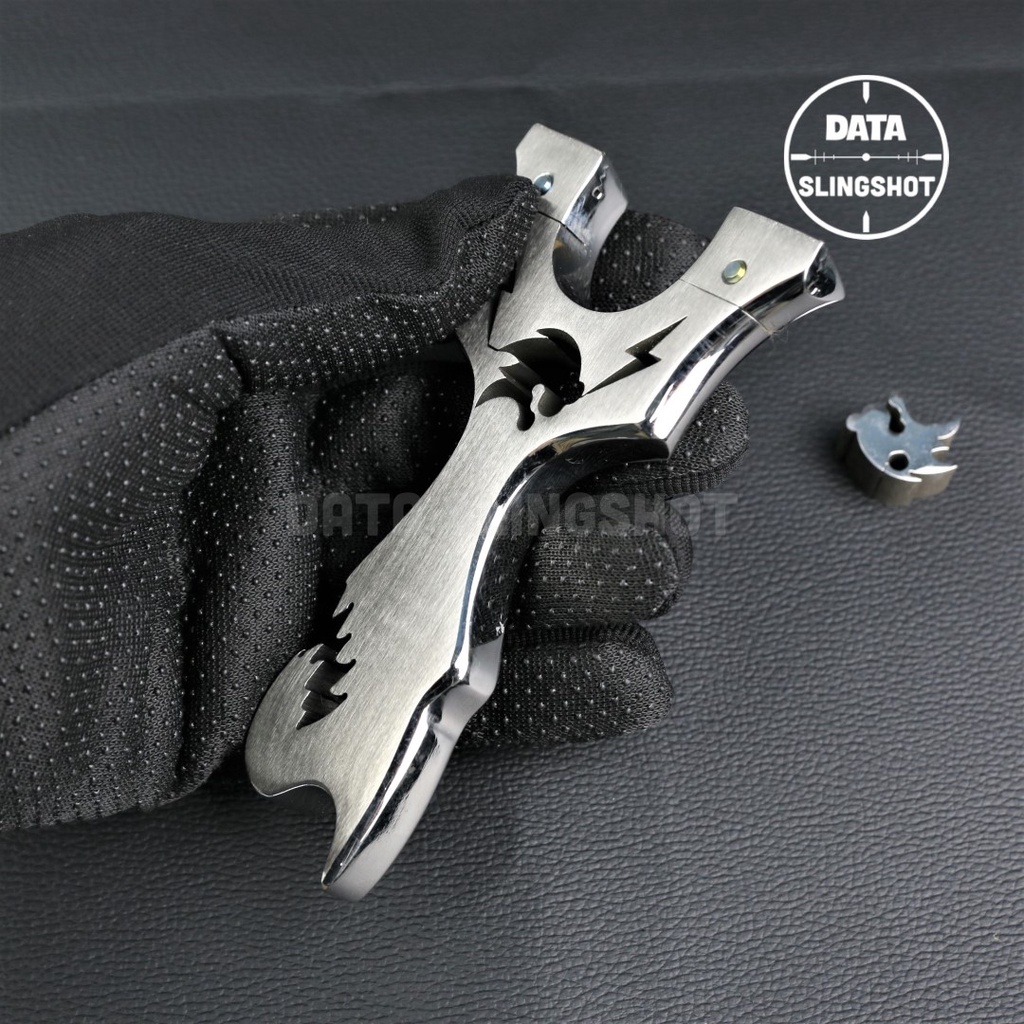 Ná Cao Su Inox CNC Cá Mập Chạc 7 Mài Bo Cạnh Hoàn Thiện gắn sẵn 2 ốc Titan - Chạc kẹp - DATA SlingShot