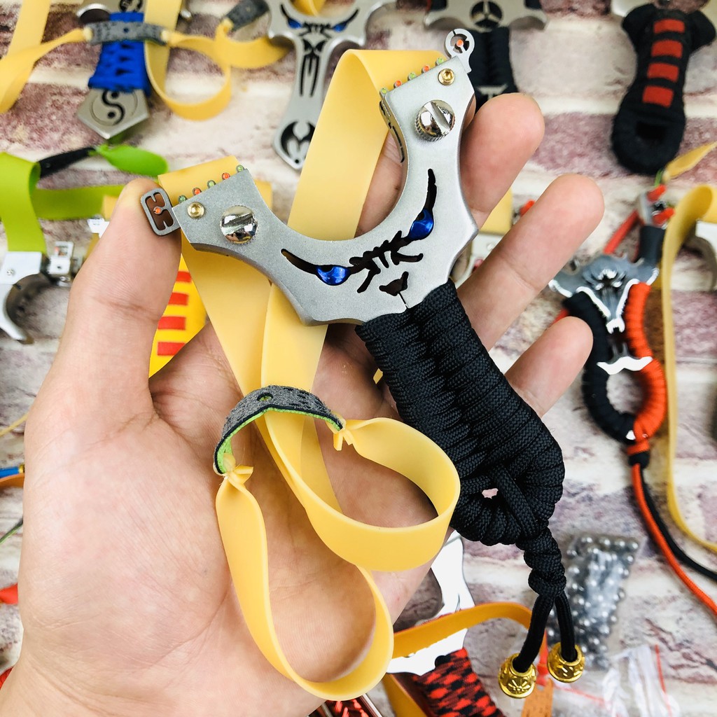 Ná Cao Su Mặt Quỷ Quấn Dây Đen - Ná Thun INOX 304 Nguyên Khối Cao Cấp Tặng Kèm Dây Dẹt 2 Lớp Dày 1mm
