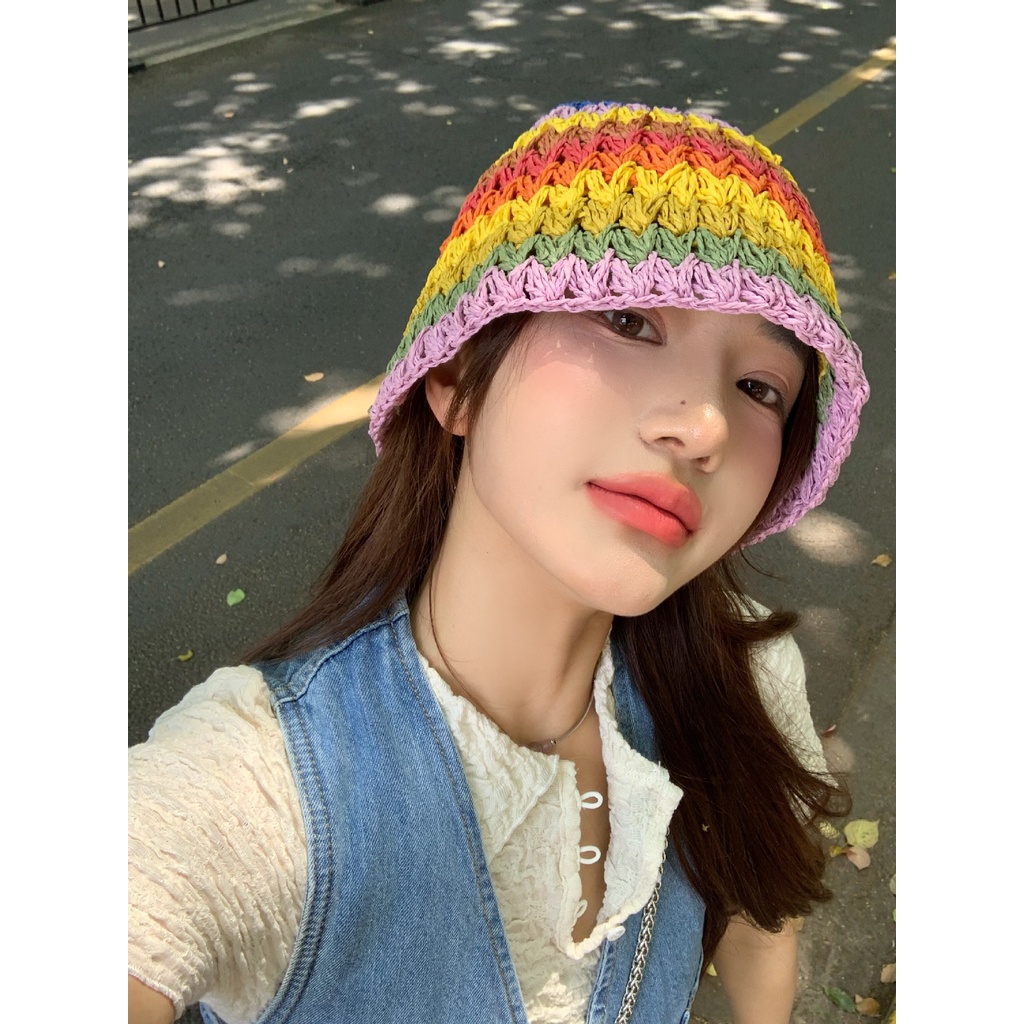Nón bucket Cói Chống Nắng Thiết Kế Nhiều Màu Sắc Thời Trang Phong Cách Hàn Quốc Cho Nữ