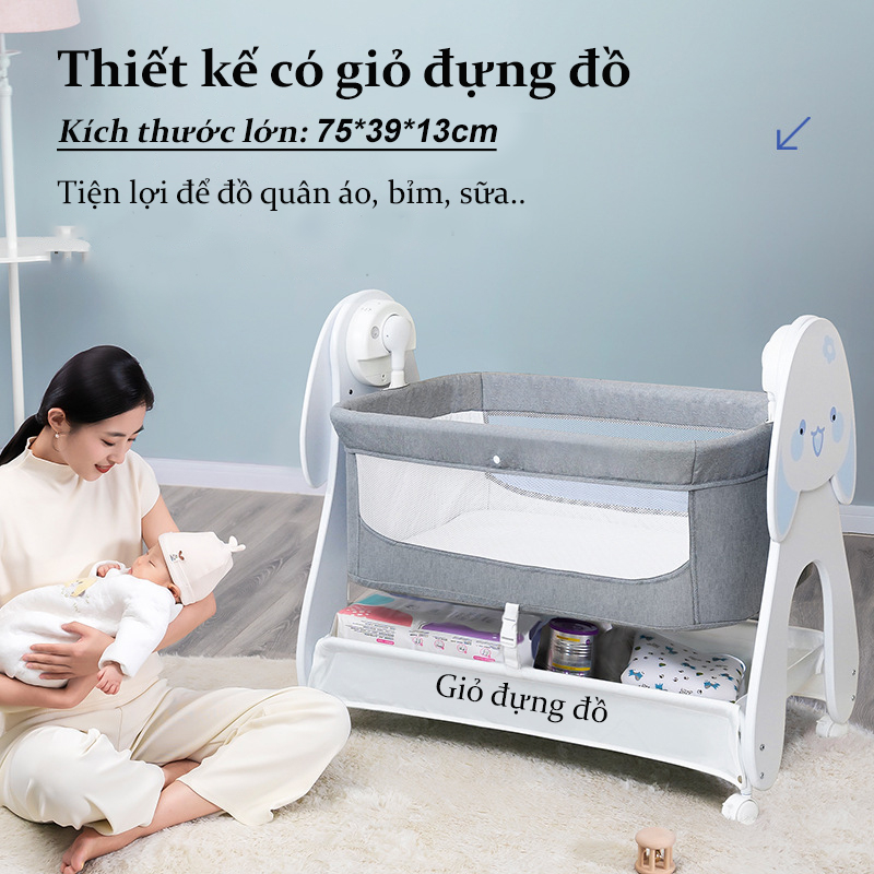 Nôi điện cho bé có tầng để đồ rộng rãi. Nôi cho bé có điều khiển thông minh từ xa kèm màn- Kiwi.baby.shop
