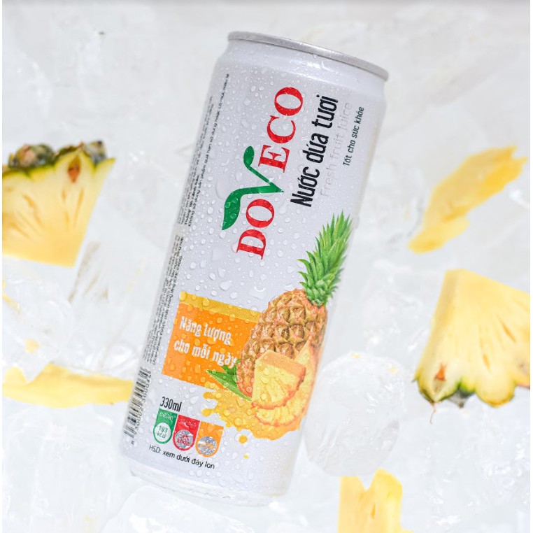 NƯỚC DỨA TƯƠI DOVECO Nguyên liệu được trồng tại Việt Nam, Sản xuất bởi Doveco Việt Nam (công ty Cổ phần Thực phẩm Xuất khẩu Đồng Giao) Những trái dứa mọng nước, thơm ngon được thu hoạch trực tiếp từ cánh đồng dứa Đồng Giao lớn nhất Việt Nam, kết hợp với công thức chế biến hoàn hảo tạo nên hương vị dứa tươi nguyên chất và dịu mát vô cùng. Nhờ chế biến từ nguồn nông sản sạch, tươi, nước dứa Doveco đều chứa đủ các vitamin, khoáng chất thiết yếu, giúp tăng cường sức đề kháng, chống oxy hóa và hỗ trợ làm đẹp da. Cùng Doveco mở nắp lon và đón nhận sự cuốn hút tinh tế mát lạnh trên từng giác quan. - HSD: 12 tháng - Thành phần: Nước dứa tươi, nước tinh khiết, đường - Đóng gói: Lon 330ml - Bảo quản: Nhiệt độ thường - HDSD: Lắc đều trước khi uống, Uống liền, Ngon hơn khi để lạnh Quý khách có thể tham quan, mua sắm trực tiếp tại showroom của Doveco tại: Tòa nhà 8TM1-26 Khu đô thị The Manor Central Park, đường Nguyễn Xiển, phường Đại Kim, quận Hoàng Mai, Hà Nội