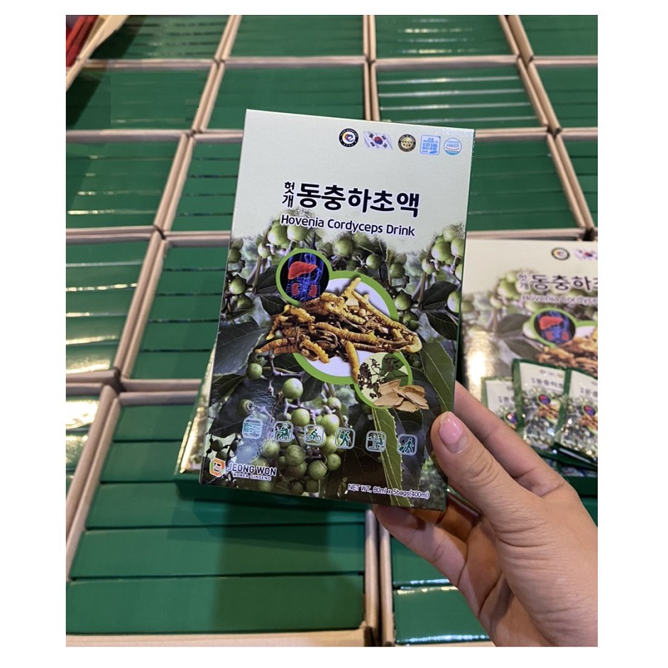 ✅ CAM KẾT ✅ - Hàng Chính Hãng, Giá Cạnh Tranh Nhất - Bảo Hành 1 Đổi 1 Trong 7 Ngày Nếu Có Lỗi Của Shop - Giao Hàng Nhanh Trên Toàn Quốc, Nhận Hàng & Thanh Toán Tại Nhà -------------------------------------------------------------- 💥💥💥 Nước Bổ Gan Đông Trùng Hạ Thảo Jeong Won Hàn Quốc, Hộp 30 Gói * 70ml 💥💥💥 ☘️ Nước Bổ Gan Đông Trùng Hạ Thảo Jeong Won Hàn Quốc được kết hợp từ chiết xuất Hovenia và tinh chất nấm Đông trùng Hạ thảo, cùng nhiều loại thảo dược quý khác, có tác dụng rất tốt trong việc tăng cường các chức năng gan, giúp thải loại các độc tố có hại, làm cho lá gan luôn khoẻ mạnh. 📌 Công Dụng Chính - Bổ gan, làm mát gan, tăng cường chức năng gan, hỗ trợ nâng cao sức khỏe cho người có gan bị suy yếu hay nhiễm bệnh. - Bồi bổ cơ thể, thanh nhiệt, đào thải các chất độc hại trong cơ thể. - Giảm mệt mỏi, thanh lọc giải độc gan đặc biệt có có tác dụng mạnh đối với người hay uống rượu giúp giải độc rượu trung hòa đào thải độc tố trong rượu giúp nhanh tỉnh giảm nhức đầu và các tác dụng phụ do dùng rượu. - Có tác dụng hiệu quả đối với người bị bệnh gan do uống rượu, gan nhiễm mỡ, tiểu đường, tăng huyết áp, các chức năng cho nước tiểu và tiêu hóa và đặc biệt hiệu ứng co bóp dạ dày. - Giúp tăng cường chức năng của cơ quan tiêu hóa và giảm vàng da. 📌 Đối Tượng Sử Dụng - Người thường xuyên uống rượu bia nhiều. - Người cần thanh nhiệt giải độc, cơ thể gầy yếu, suy kiệt. - Người dùng thuốc tây thời gian dài. - Người suy gan, có vấn đề về gan. 📌 Hướng Dẫn Sử Dụng - Người lớn một ngày uống 1-2 lần, mỗi lần 1 gói. - Có thể dùng trước hoặc sau khi uống rượu bia. Lắc đều trước khi uống. - Trẻ em từ 9 đến 14 tuổi uống bằng 1/2 liều trên. - Trẻ em từ 5 đến 9 tuổi uống 1/2 gói chia làm 3 lần/ngày. 📌 Thành Phần - Hỗn hợp chiết xuất từ nấm Đông trùng Hạ thảo (12%), Hovenia - cây nho khô, sơn trà, táo tàu, ngải lá kim, quế, cam thảo, đường fructose, axit citric, và các thảo dược quý khác. 📌 Thông Tin Sản Phẩm - Xuất xứ: Hàn Quốc - Quy cách: Hộp 30 gói * 70ml * Chú Ý: - Sản phẩm không phải là thuốc và không có tác dụng thay thế thuốc chữa bệnh. - Để nơi khô ráo thoáng mát, tránh ánh sáng mặt trời. -------------------------------------------------------------- HÀNG CHÍNH HÃNG - GIÁ TỐT NHẤT ☘️ Tuyển Sỉ, Đại Lý & CTV Toàn Quốc ☎️ Liên Hệ: 0974211403 (Zalo, Call) 📖 Địa Chỉ: Hà Đông, Hà Nội #nước_bổ_gan_hàn_quốc #nước_bổ_gan_hàn_quốc_samsung #bổ_gan_hàn_quốc #nước_mát_gan_hàn_quốc #nước_giải_độc_gan_hàn_quốc #nước_thuốc_bổ_gan_giải_rượu_hàn_quốc_hovenia_dulcis #nước_mát_gan_hàn_quốc_gold_hovenia_dulcis #nước_giải_rượu_hovenia #giải_độc_gan_dạng_nước #hovenia_dulcis_hàn_quốc #nước_uống_bổ_gan_hàn_quốc #nước_uống_mát_gan_hàn_quốc #nước_bổ_gan_giải_rượu_hàn_quốc #bổ_gan_giải_rượu_hovenia #nước_thải_độc_gan_hàn_quốc #tw_hovenia_dulcis_cách_dùng #nước_bổ_gan_hovenia #nước_mát_gan_giải_rượu_hàn_quốc
