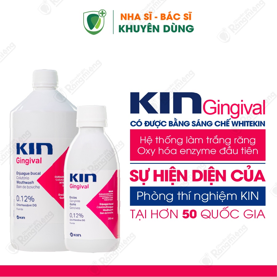 Nước súc miệng Kin gingival ngừa viêm nướu - Làm sạch mảng bám, nhẹ dịu, không chứa cồn - Dung tích 250ml/1000ml
