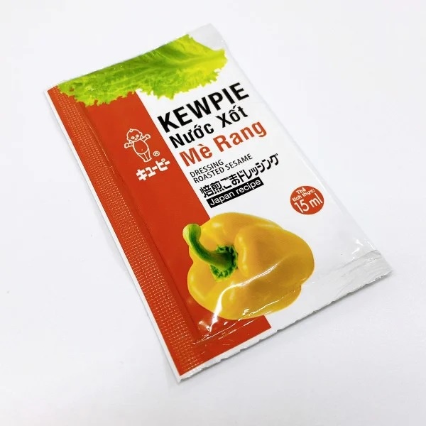 Nước Xốt Mè Rang Kewpie 15ml Nước xốt có hương vị đặc trưng đến từ sự kết hợp hài hòa giữa vị ngon bùi của mè rang, vị đậm đà của nước tương và vị thanh chua của giấm. Thích hợp với các món gà chiên giòn, gà hấp và các món gỏi trộn salad.THÀNH PHẦN Dầu đậu nành, Nước,