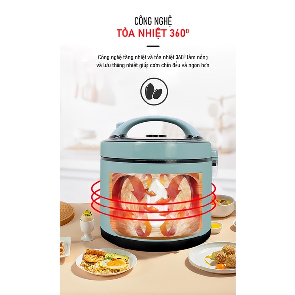 KIỂU DÁNG MỚI LẠ - ĐỘC ĐÁO – TIỆN DỤNG Thiết kế hiện đại, đề cao an toàn Sản phẩm có bề ngoài cứng cáp với màu sắc trang nhã, hiện đại, khơi gợi cảm hứng nấu nướng cho người nội trợ và tô điểm thêm màu sắc tươi tắn cho gian bếp. Thân nồi được làm bằng nhựa PP siêu bền