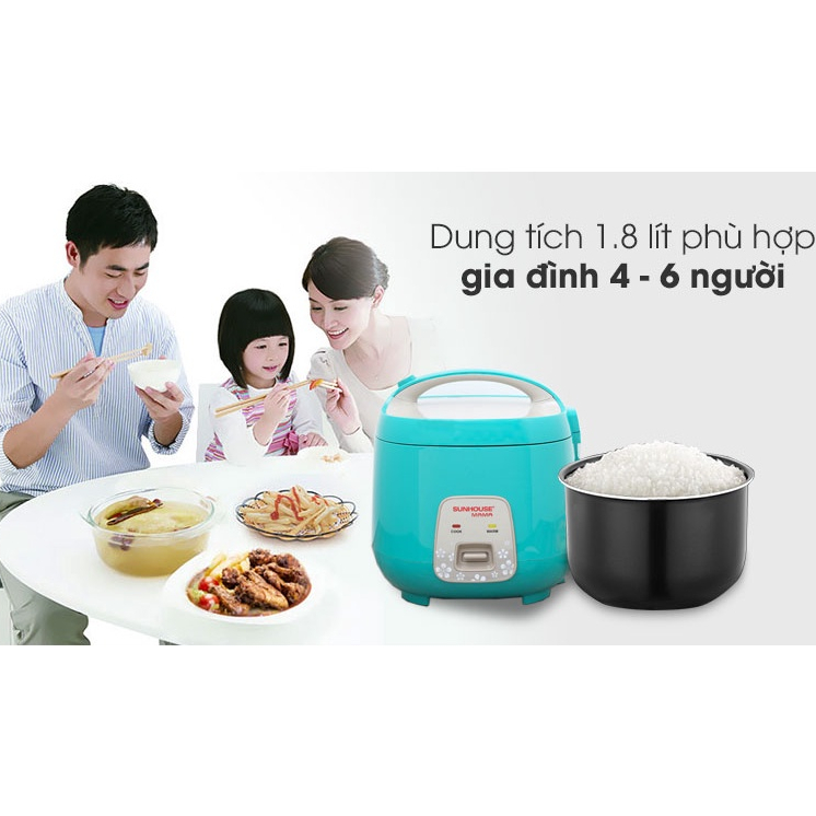 Nồi cơm điện Sunhouse Mama 1.8 lít SHD8652G Số người ăn 4 - 6 người Công suất 700W Lòng nồi dày 1.803 mm