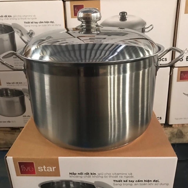 ƯU ĐIỂM NỔI BẬT NỒI INOX 3 ĐÁY 36CM FIVE STAR N36-3D Nồi có đường kính 36 cm x cao 24cm,dung tích 27 lít Nồi inox 3 đáy 36cm Five Star N36-3D bền, sáng bóng, ít bị oxi hóa, an toàn cho sức khỏe người dùng, không tạo chất độc hại khi nấu ăn. Nắp Nồi inox 3 đáy 36cm F