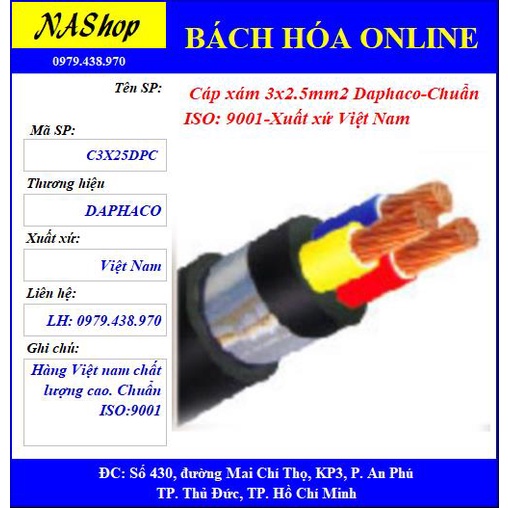 NaShop - Dây điện, cáp điện 3 lõi FA-3x1.5-FA-3x2.5,3x4.0 , Daphaco chuẩn ISO 9001, Việt Nam, thiết bị điện