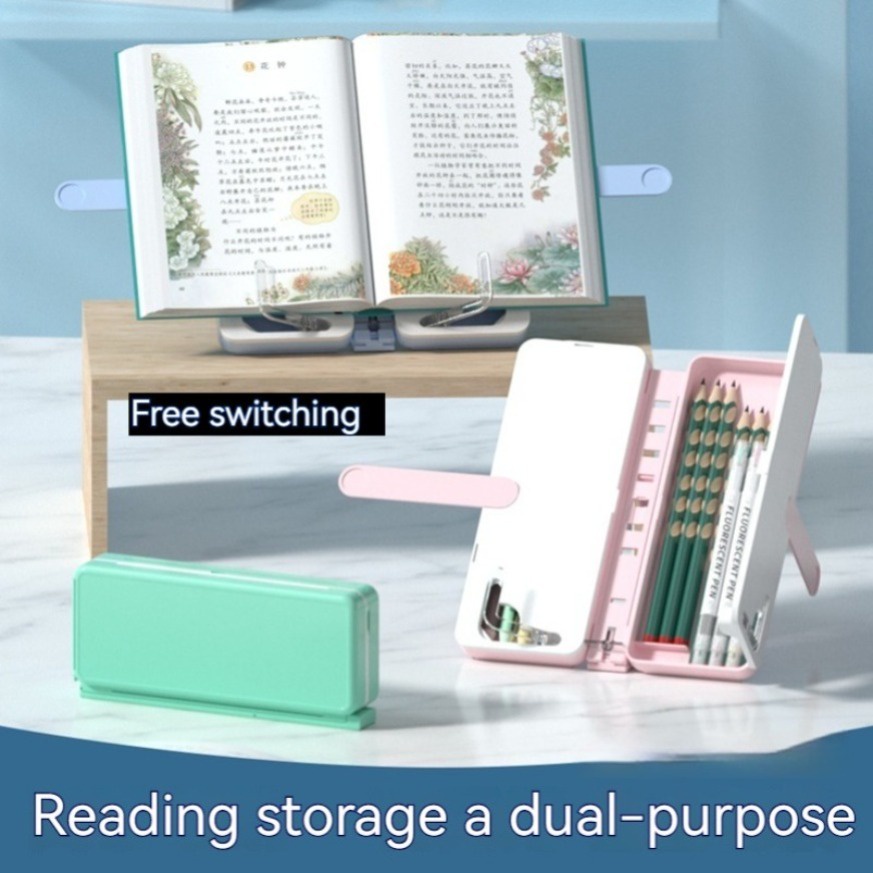 “Trong KHO ” Hộp đựng bút chì gấp 3 trong 1 NBX / Giá sách đọc sách có thể gập lại / Hộp đựng bút chì đa chức năng có bảng trắng và miếng dán sách / Hộp đựng bút chì thông minh có ngăn đựng sách Tính ưu việt: 1. Có thể được sử dụng để ghi chú bằng bảng trắng trong hộp