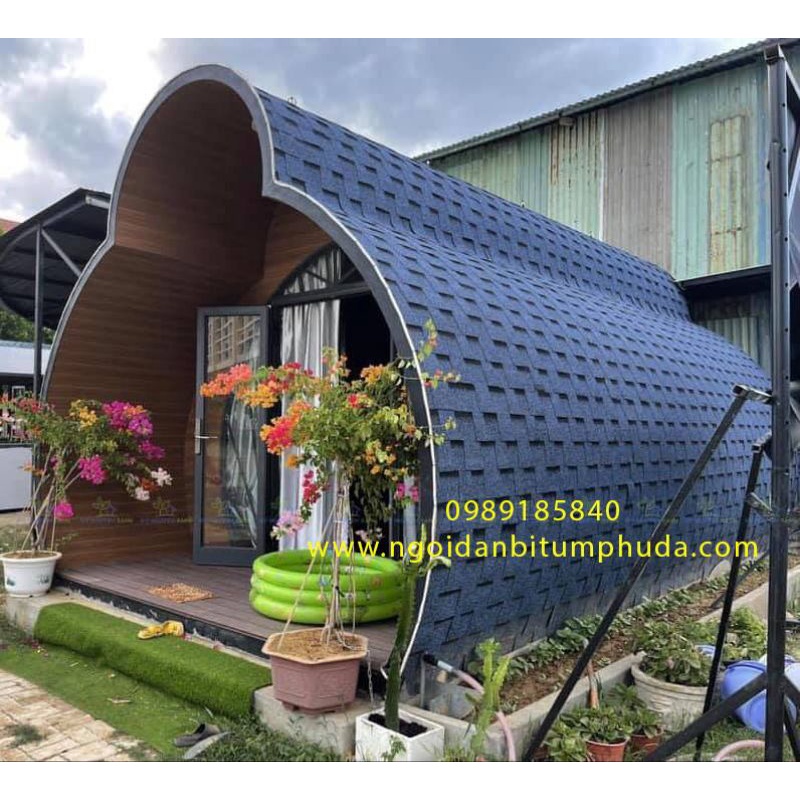Ngói bitum cana tổ ong dark blue - ngói lợp phủ đá màu xanh dương Hàn Quốc chống thấm và trang trí mái biệt thự, nhà phố, nhà gỗ, bungalow, đóng gói 22 tấm ngói/gói/phủ 3m2 mái