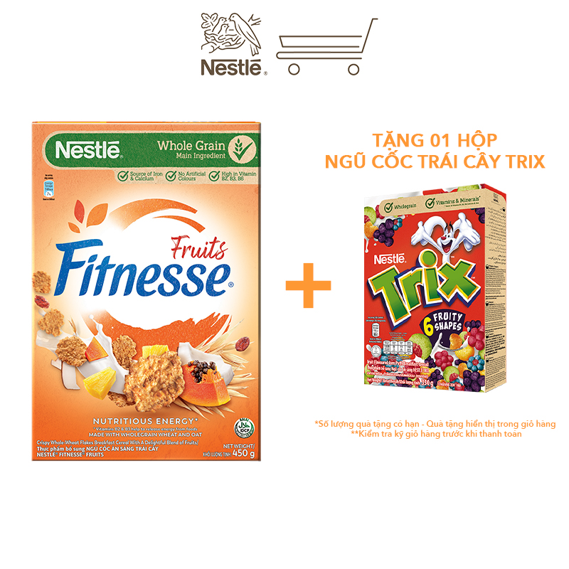 Ngũ cốc ăn sáng Nestlé Fitnesse fruits là sản phẩm ngũ cốc ăn liền giàu dinh dưỡng với thành phần chủ yếu từ mầm lúa mạch nguyên cám (69,9%), cung cấp 5 vitamin nhóm b, canxi và chất xơ. Mỗi khẩu phần ngũ cốc Nestlé Fitnesse fruits cung cấp 56% nhu cầu nguyên cám khuyến nghị hàng ngày. Dùng 1 khẩu phần ngũ cốc Nestlé Fitnesse fruits với 125ml sữa tươi và 1 trái cây như táo đem lại bữa sáng tiện lợi, giàu dinh dưỡng.Chế độ ăn giàu ngũ cốc nguyên cám với 2-3 khẩu phần mỗi ngày sẽ giúp hỗ trợ hệ tiêu hóa, giảm nguy cơ bệnh tim mạch & giảm nguy cơ mắc bệnh liên quan đến béo phì khi kết hợp với chế độ ăn uống khoa học và tập luyện đều đặn. ĐẶC ĐIỂM NỔI BẬT- Ngũ cốc ăn sáng được sản xuất bởi tập đoàn Nestlé với thành phần chủ yếu là ngũ cốc nguyên cám, giữ lại trọn vẹn những dưỡng chất tự nhiên quý giá, chứa đựng nguồn dinh dưỡng dồi dào (protein, sắt, vitamin b, chất xơ canxi và khoáng chất…)- Ngũ cốc ăn sáng Nestlé giàu chất xơ, vitamin & ít chất béo cho bạn bữa sáng nhẹ bụng nhưng vẫn giàu dưỡng chất, hỗ trợ kiểm soát cân nặng, góp phần hình thành chế độ ăn lành mạnh.- Miếng ngũ cốc giòn thơm ngon ngọt, với mảnh lúa mì nguyên cám giòn tan cùng với hỗn hợp trái cây thú vị.- Nỗi khẩu phần ngũ cốc Nestlé Fitnesse fruits cung cấp 56% nhu cầu nguyên cám khuyến nghị hàng ngày (50g) THÀNH PHẦNThành phần: ngũ cốc (69,9%) [lúa mì nguyên cám (có chứa gluten) (59,8%), yến mạch nguyên cám (có chứa gluten) (10,1%) ], hỗn hợp trái cây (21%) [nho khô (13,4%), dứa khô (4,3%) (dứa, đường, chất điều chỉnh độ acid 330, chất bảo quản 223), đu đủ khô (3,5%) (đu đủ, đường, chất điều chỉnh độ acid 330, chất bảo quản 223)], đường, chiết xuất mạch nha [lúa mạch (có chứa gluten), tinh bột sắn], các khoáng chất (canxi carbonat, sắt khử), muối i-ốt (natri clorid và kali iodat), sirô glucose, chất nhũ hóa 471, chất ổn định 339(iii), chất chống oxy hóa 307b, các vitamin (b3, b5, b6, b2, b9). LƯU Ý- Sản phẩm có chứa gluten, sulfit và có thể chứa sữa, đậu nành và các loại hạt. HƯỚNG DẪN SỬ DỤNG- Ăn trực tiếp hoặc trộn với sữa theo tỷ lệ một khẩu phần (khoảng 40g) với nửa ly sữa (khoảng 125 ml). Ngon hơn khi sử dụng với sữa lạnh, ít béo, ít đường. CÁCH BẢO QUẢN- Bảo quản nơi khô ráo, thoáng mát, tránh ánh nắng trực tiếp. Sản phẩm sau khi mở phải được bảo quản trong đồ đựng kín để giữ sản phẩm được thơm ngon Xuất xứ: Thụy SỹNơi sản xuất: Phi-líp-pinNgày sản xuất: In trên bao bì sản phẩmHạn sử dụng: 10 tháng kể từ ngày sản xuất THÔNG TIN THƯƠNG HIỆUNestlé là tập đoàn thực phẩm, dinh dưỡng và thức uống lớn trên thế giới với bề dày lịch sử hơn 150 năm kinh nghiệm không ngừng cải tiến và phát triển. Với hơn 2000 nhãn hiệu khác nhau, từ các thương hiệu biểu tượng toàn cầu cho đến các thương hiệu địa phương được yêu thích, mục đích của nestlé là nâng cao chất lượng cuộc sống và góp phần vào một tương lai khỏe mạnh hơn.Giá sản phẩm trên Tiki đã bao gồm thuế theo luật hiện hành. Bên cạnh đó, tuỳ vào loại sản phẩm, hình thức và địa chỉ giao hàng mà có thể phát sinh thêm chi phí khác như phí vận chuyển, phụ phí hàng cồng kềnh, thuế nhập khẩu (đối với đơn hàng giao từ nước ngoài có giá trị trên 1 triệu đồng).....