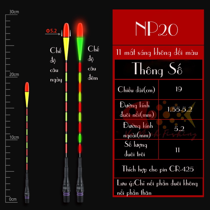 Ngọn phao đèn câu đài tàng hình hỗn hợp ngày đêm cảm ứng, ánh sáng lạnh - Khôi Fishing