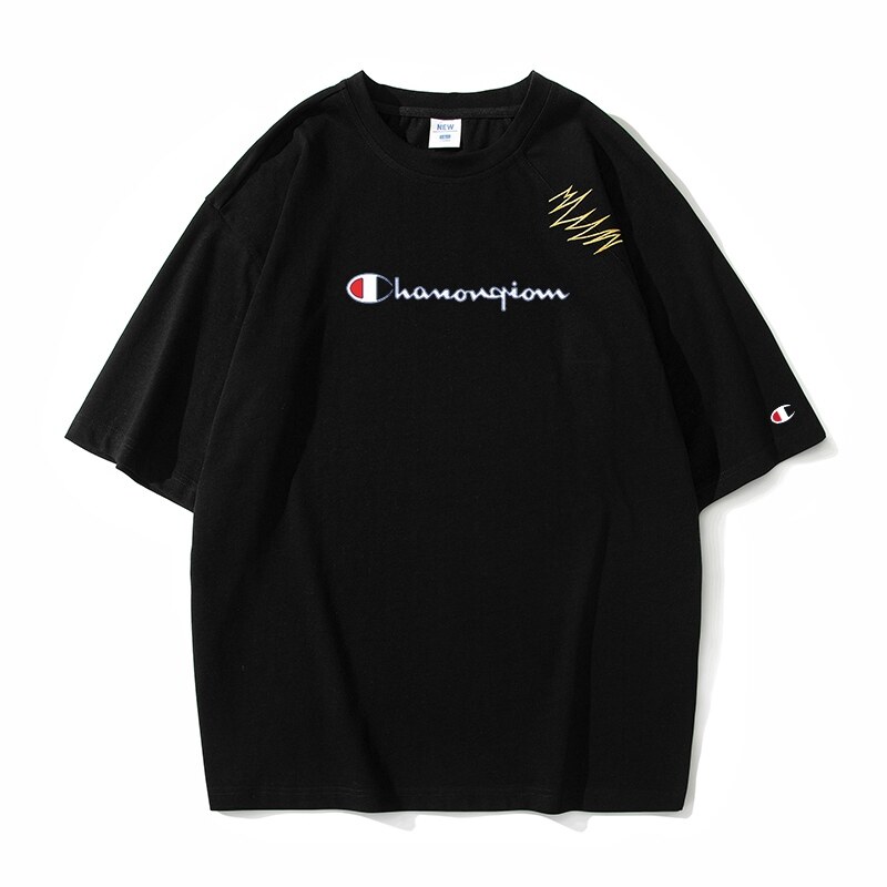 Nhà vô địch 2023 mới cotton ngắn tay Áo thun nam và tròn mùa hè cho nữ cổ rộng giản dị hàng đầu cặp đôi chạm đáy Áo sơ mi thủy triều championˉ