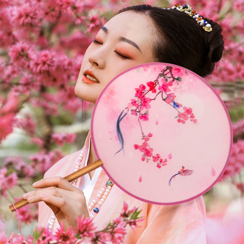 Nhóm quạt phong cách cổ xưa quạt múa thiếu nhi nữ Phong cách Trung Quốc Phong cách Trung Quốc Quạt phong cách Trung Quốc sườn xám cầm tay mùa hè quạt tròn nhỏ tay cầm dài tua m1WI