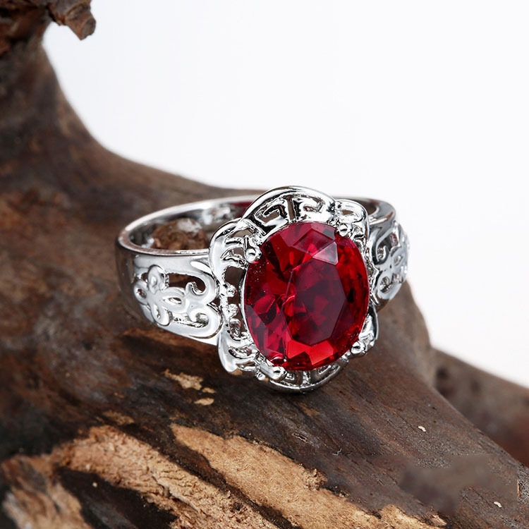 Nhẫn Đính Đá Zircon Đỏ Sang Trọng Thanh Lịch Cho Nữ