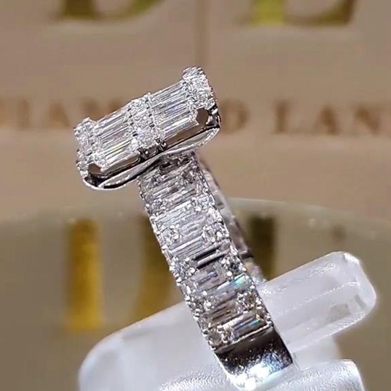 Nhẫn đính hôn mạ bạc đính đá Zircon sang trọng lấp lánh cho nữ