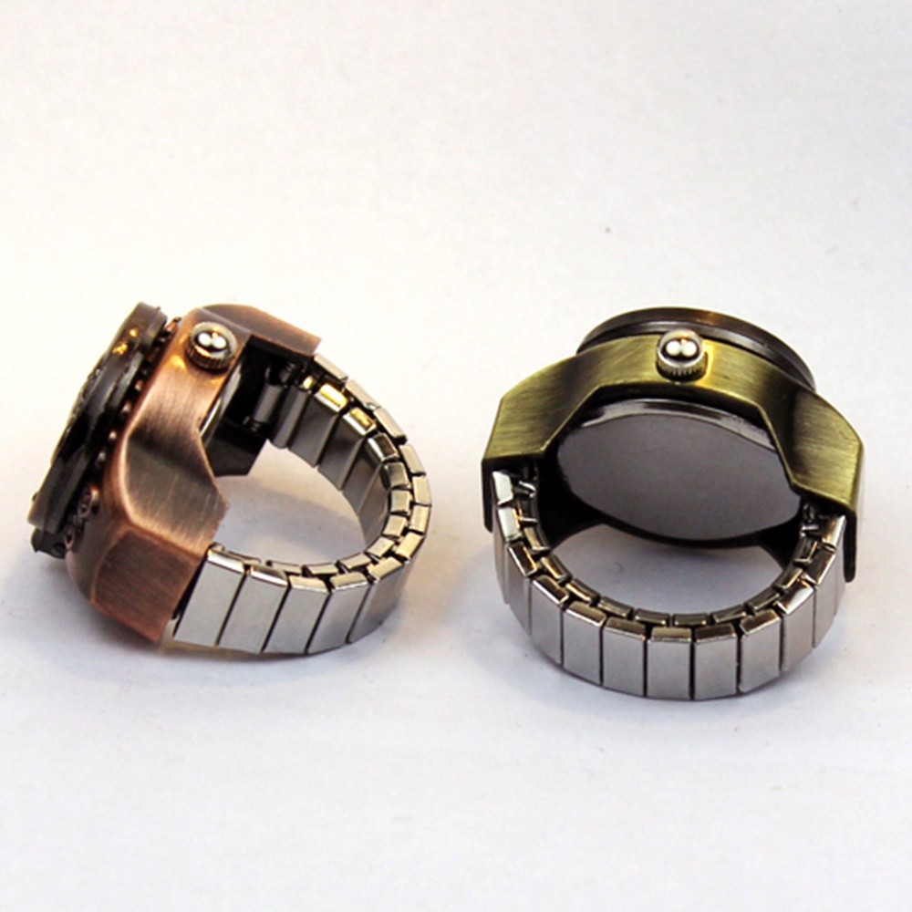 Nhẫn đồng hồ nam nữ, đồng hồ đeo ngón tay độc đáo mạ vàng đính đá làm trang sức đẹp