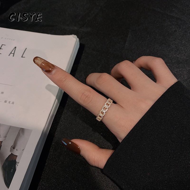 Nhẫn đeo ngón tay CISYE dạng hở đính đá nhân tạo điều chỉnh được thời trang dành cho nữ