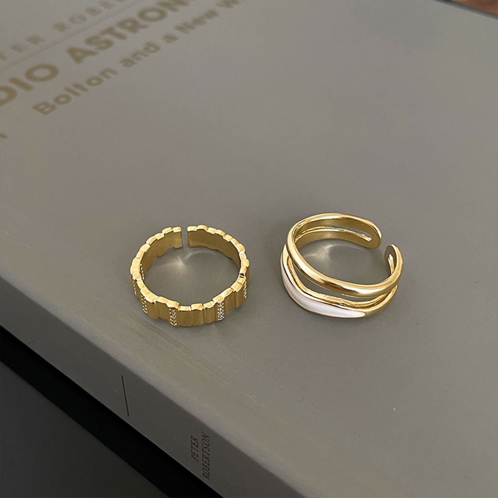 Nhẫn Đeo Tay Kim Loại Hai Lớp Đính Đá Zircon Họa Tiết Vân Đá Zircon Thiết Kế Tinh Tế Sang Trọng Thanh Lịch Có Thể Điều Chỉnh Cho Nữ