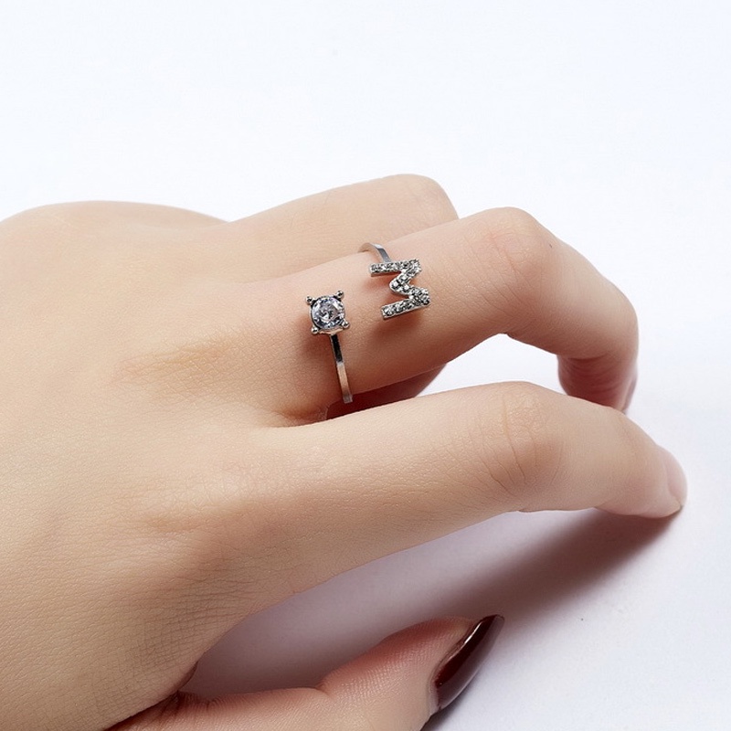 Nhẫn Đeo Tay Kim Loại Hình Học Đính Đá Zircon Màu Cầu Vồng Thời Trang Cho Nữ