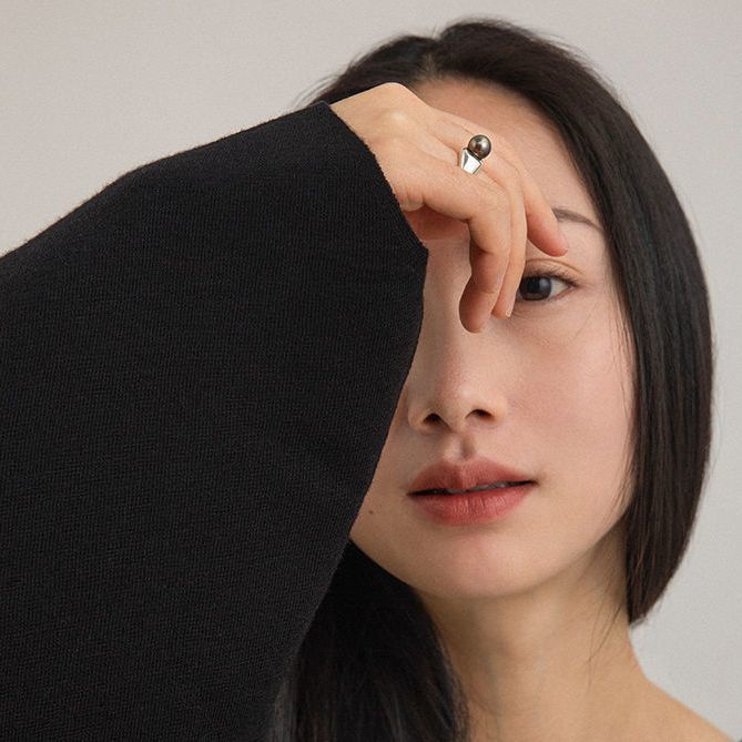 Nhẫn Bạc 925 Đính Ngọc Trai Đen Sang Trọng Thời Trang Cho Nữ