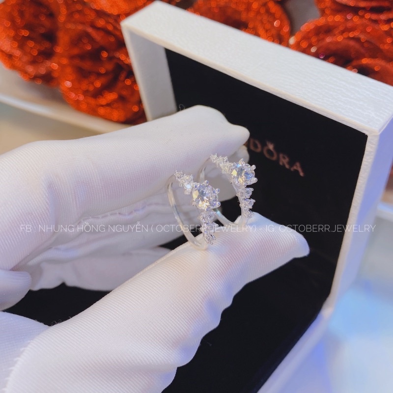 Nhẫn nữ bạc thật, nhẫn bạc thân xoắn đính đá tấm đơn giản xinh xắn - Kho sỉ bạc Nhất Linh